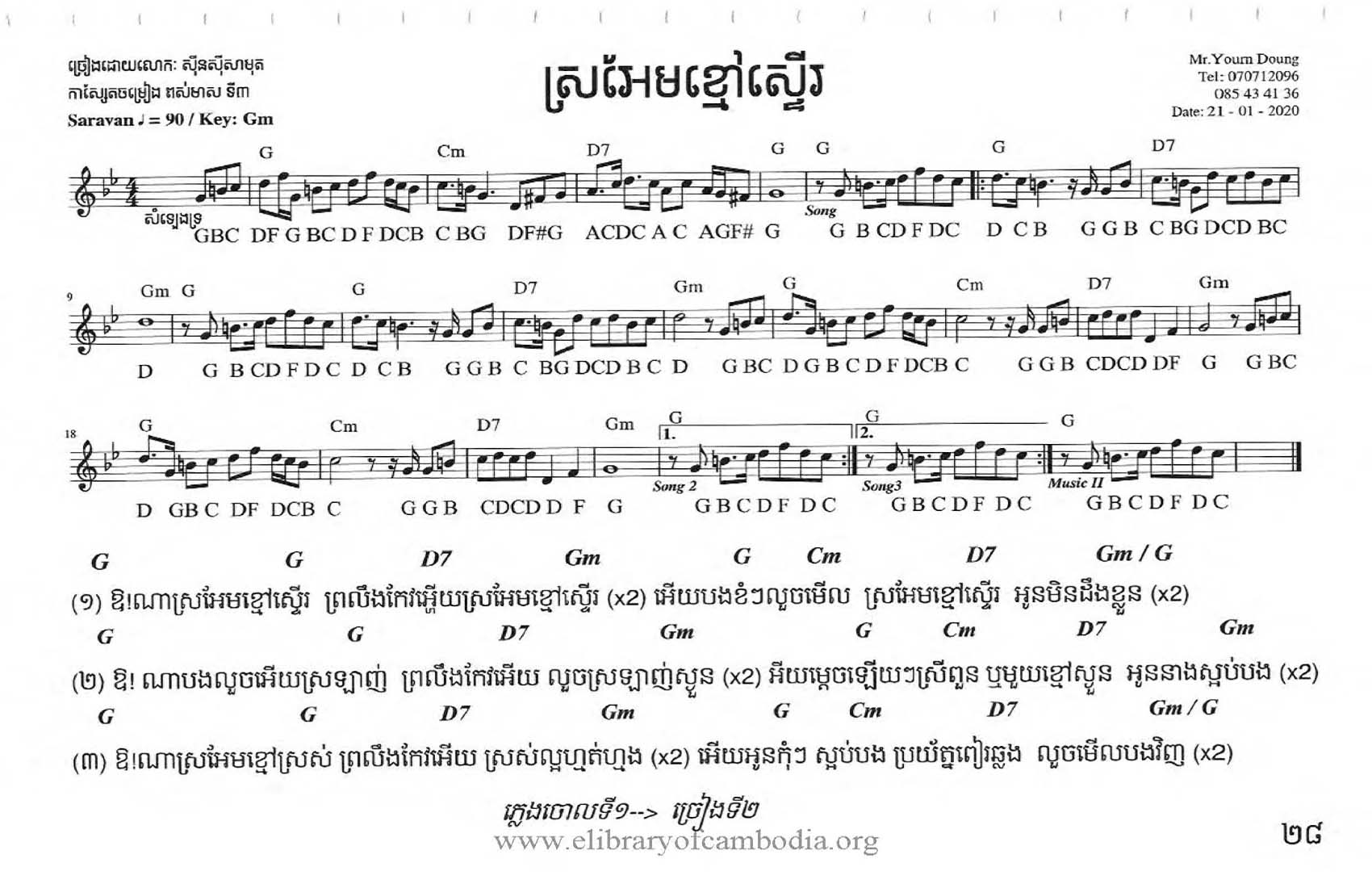 ៣ – ឱ! ណាស្រអែមខ្មៅស្រស់ ព្រលឹងកែវអើយស្រស់ល្អហ្មត់ហ្មង (២ដង) ។