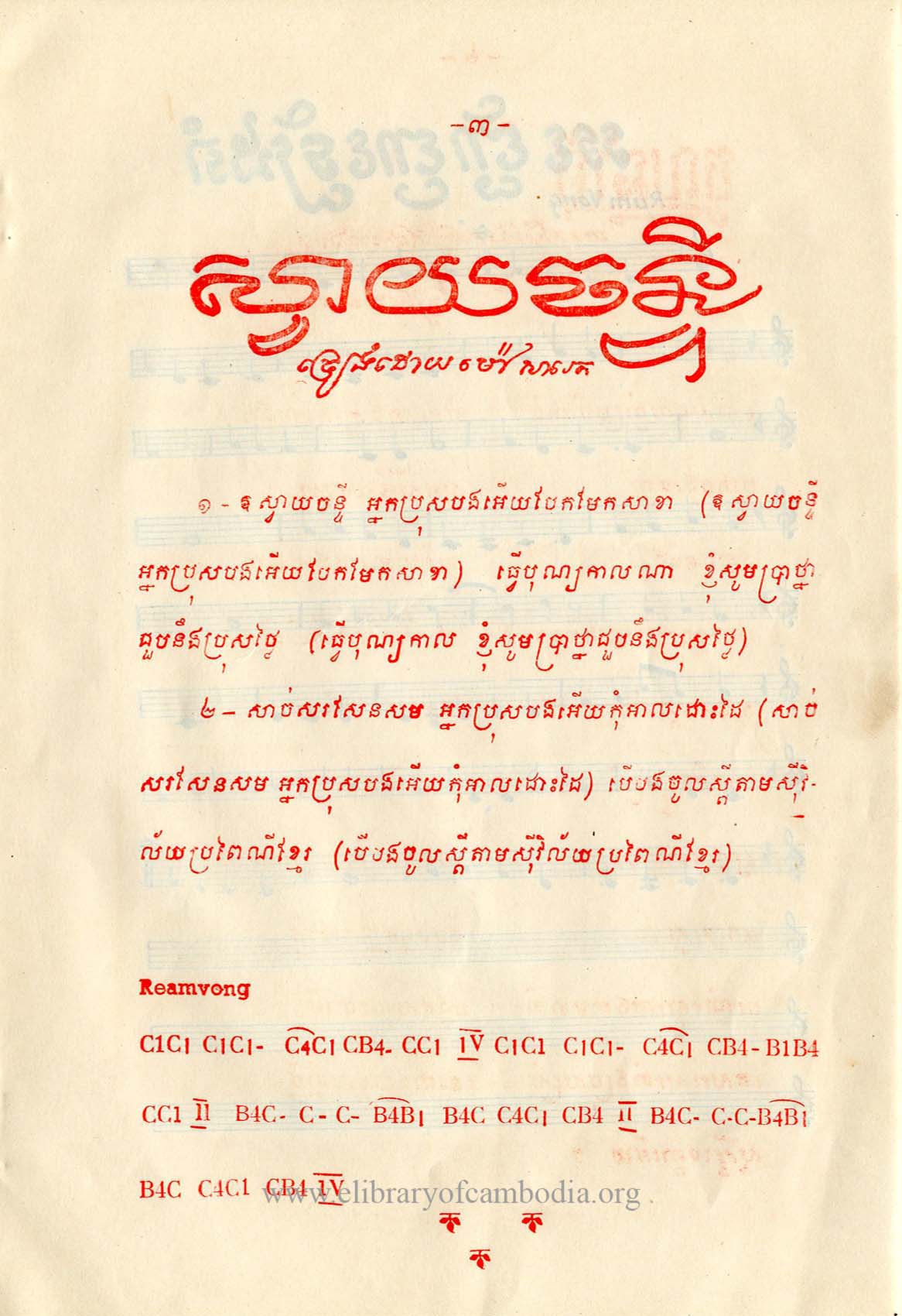 - យើងមានអត្ថបទ និងអក្សរភ្លេង ដកស្រង់ចេញពីសៀវភៅ តន្រ្តីយោធាភីរម្យ ទំព័រទី