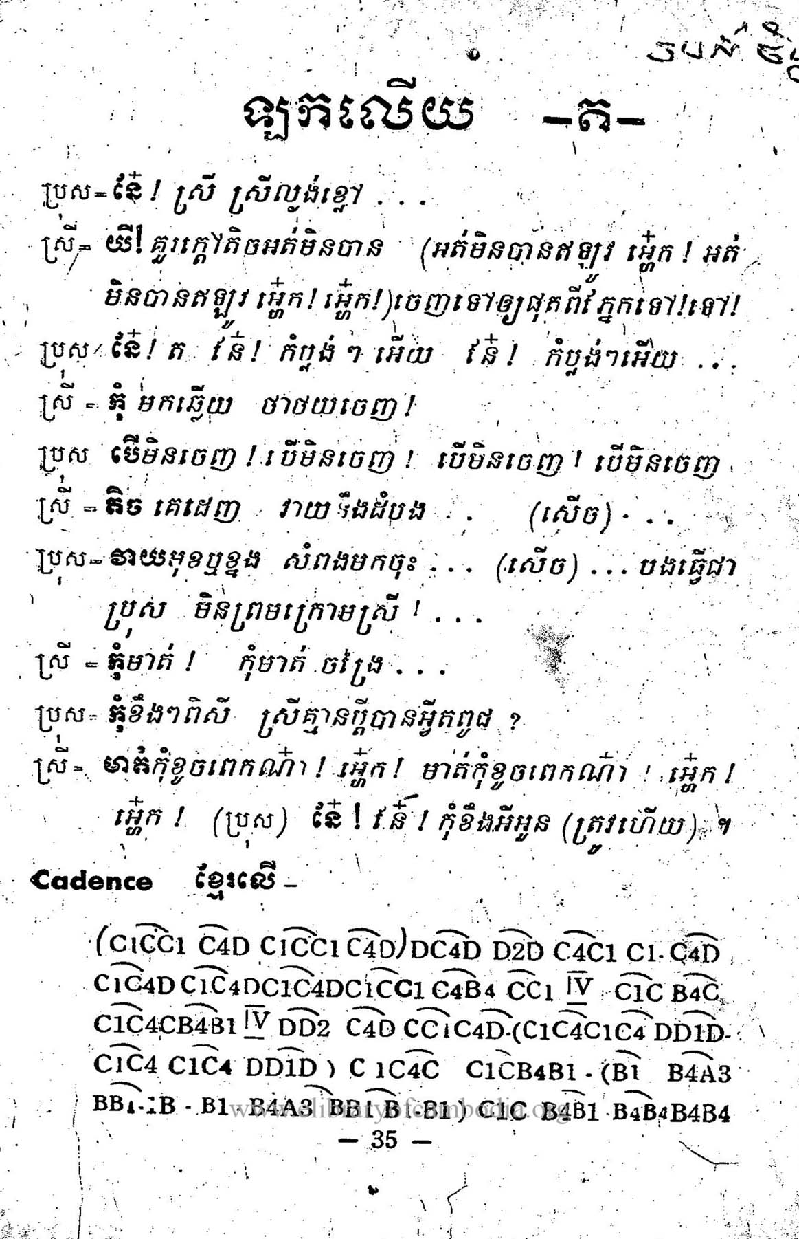 ២– (ស) នែ!.. នែ!ប្រុសកំព្រើល នែ! អ្នកប្រុសកំព្រើលៗ គួរ ឱ្យផ្អើល មិនហ៊ានក្បែរ ។