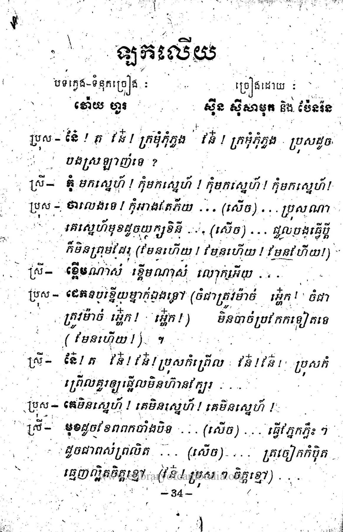 - ឡកលើយ ជាបទចម្រៀងដើម មុនថ្ងៃ១៧ មេសា ១៩៧៥ ច្រៀងដំបូង ដោយ ស៊ិន ស៊ីសាមុត និង ប៉ែនរ៉ន