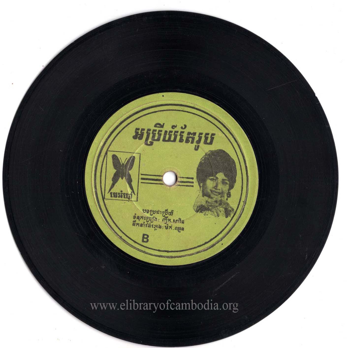 យើងខ្ញុំមានបំណងរក្សាសម្បត្តិខ្មែរទុកនៅលើគេហទំព័រ www.elibraryofcambodia.org នេះ ព្រមទាំងផ្សព្វផ្សាយសម្រាប់បម្រើជាប្រយោជន៍សាធារណៈ ដោយឥតគិតរក និងយកកម្រៃ នៅមុនថ្ងៃទី១៧ ខែមេសា ឆ្នាំ១៩៧៥ ចម្រៀងខ្មែរបានថតផ្សាយលក់លើថាសចម្រៀង 45 RPM 33 ½ RPM 78 RPM​ ដោយផលិតកម្ម ថាស កណ្ដឹងមាស ឃ្លាំងមឿង ចតុមុខ ហេងហេង សញ្ញាច័ន្ទឆាយា នាគមាស បាយ័ន ផ្សារថ្មី ពស់មាស ពែងមាស ភួងម្លិះ ភ្នំពេជ្រ គ្លិស្សេ ភ្នំពេញ ភ្នំមាស មណ្ឌលតន្រ្តី មនោរម្យ មេអំបៅ រូបតោ កាពីតូល សញ្ញា វត្តភ្នំ វិមានឯករាជ្យ សម័យអាប៉ូឡូ ​​​ សាឃូរ៉ា ខ្លាធំ សិម្ពលី សេកមាស ហង្សមាស ហនុមាន ហ្គាណេហ្វូ​ អង្គរ Lac Sea សញ្ញា អប្សារា អូឡាំពិក កីឡា ថាសមាស ម្កុដពេជ្រ មនោរម្យ បូកគោ ឥន្ទ្រី Eagle ទេពអប្សរ ចតុមុខ ឃ្លោកទិព្វ ខេមរា មេខ្លា សាកលតន្ត្រី មេអំបៅ Diamond Columbo ហ្វីលិព Philips EUROPASIE EP ដំណើរខ្មែរ​ ទេពធីតា មហាធូរ៉ា ជាដើម​។