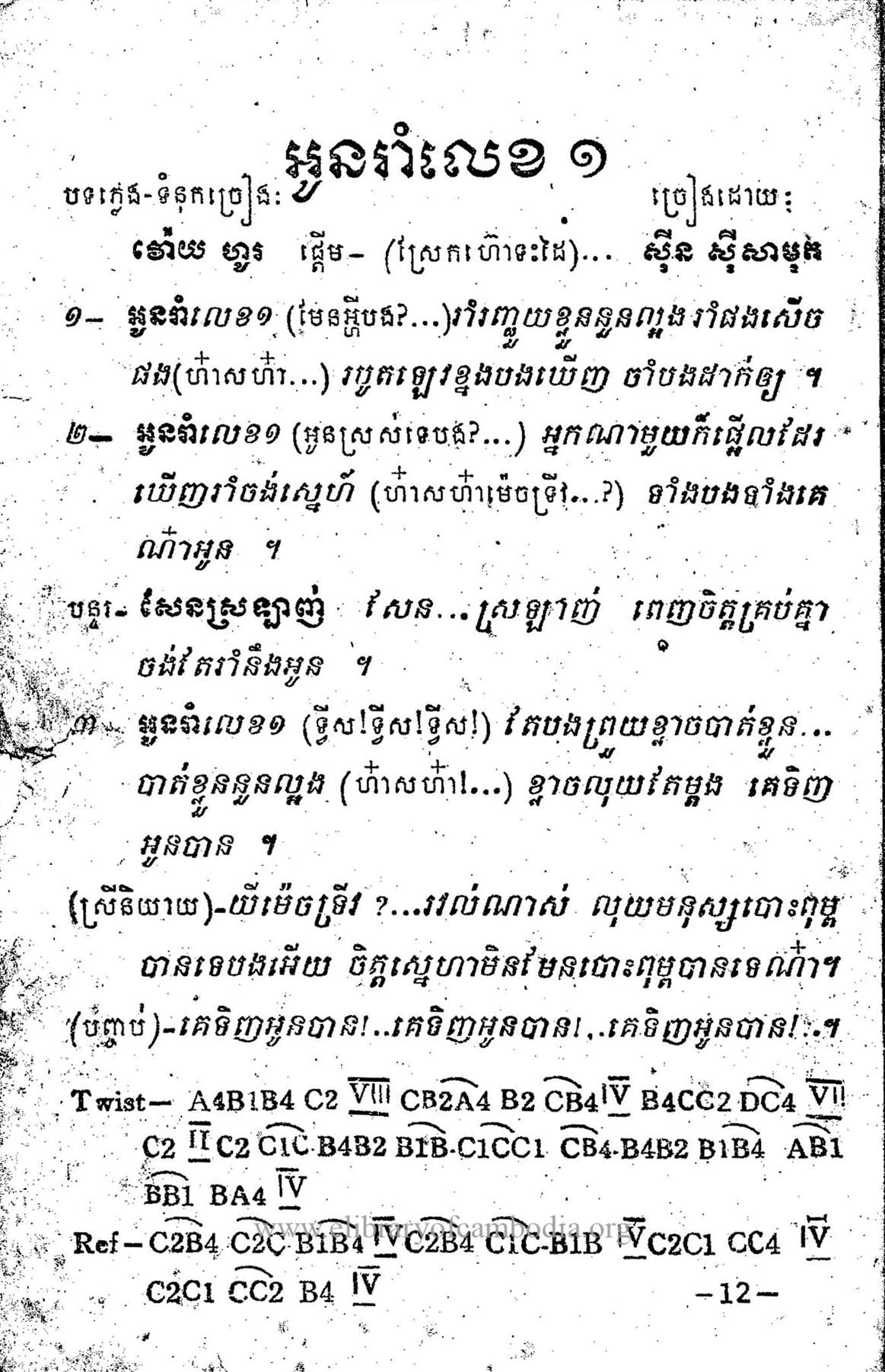 - អូនរាំលេខមួយ ជាចំណងជើងនៃបទចម្រៀងដើម មុនថ្ងៃ១៧ មេសា ១៩៧៥ ច្រៀងដំបូងដោយ ស៊ីន ស៊ីសាមុត