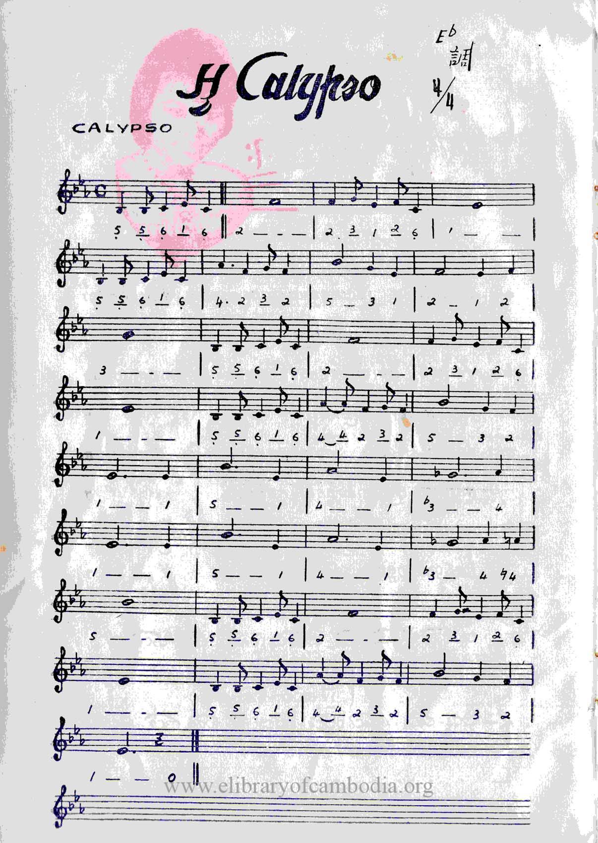 • អូ! Calypso ជាបទចម្រៀងដើម មុនថ្ងៃ១៧ មេសា ១៩៧៥ ច្រៀងដំបូង ដោយ ឈួន ម៉ាឡៃ