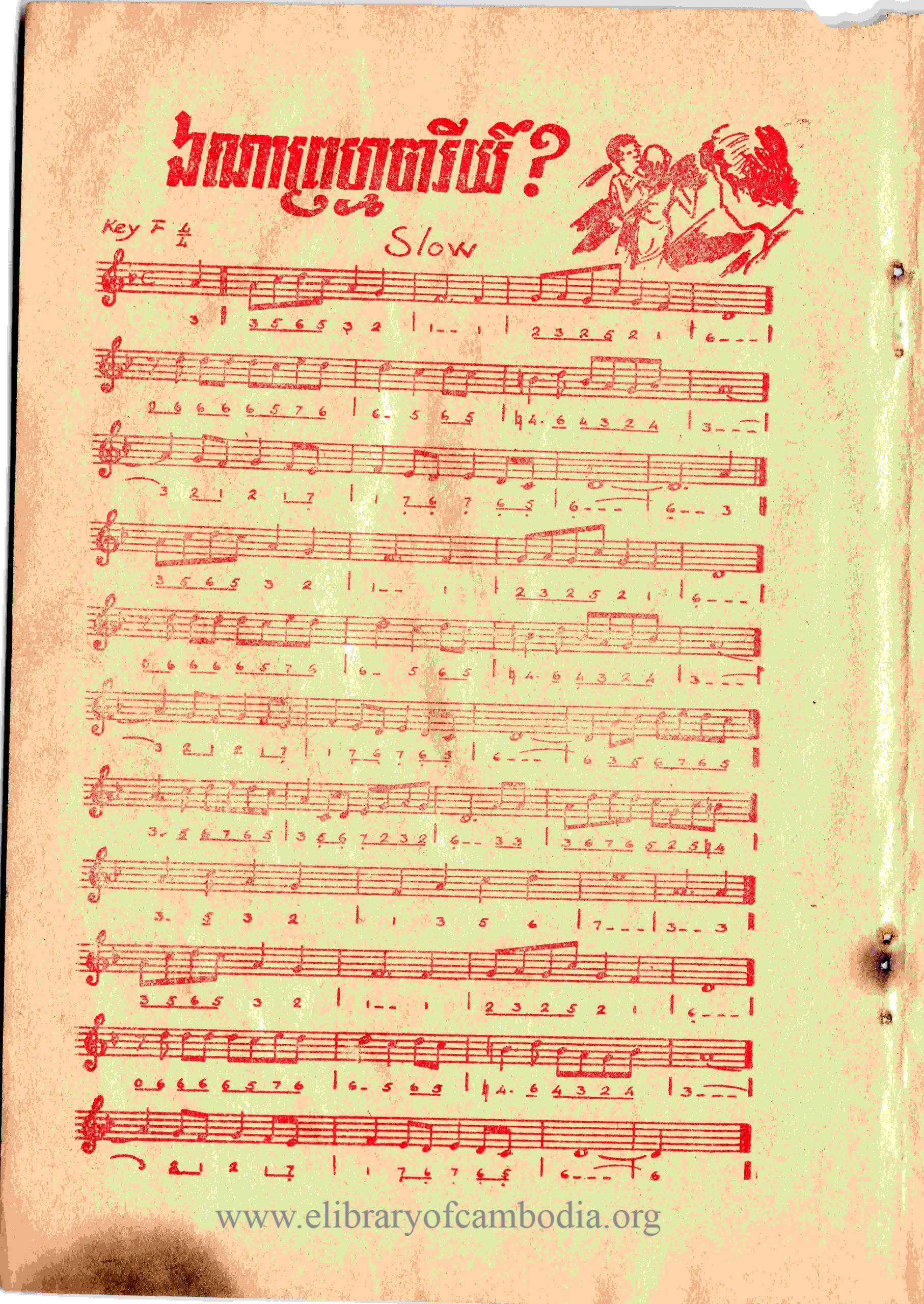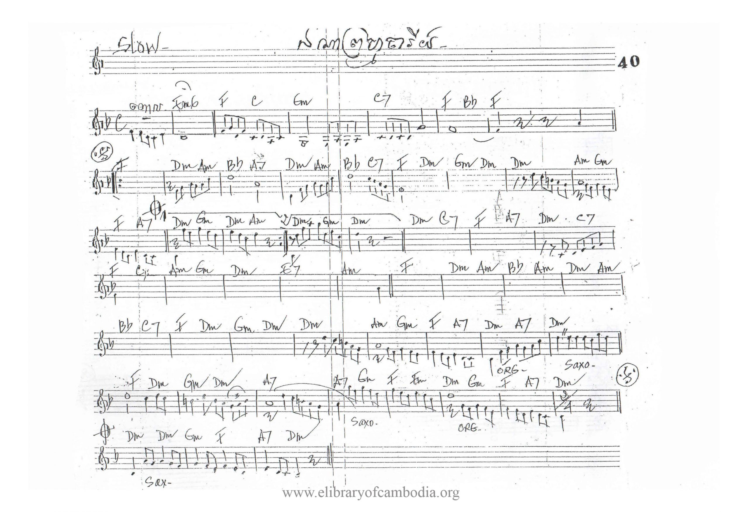 • យើងមានអត្ថបទ និងអក្សរភ្លេង​ ដកស្រង់ចេញពីសៀវភៅ ចំរៀងសម័យ 11 ទំព័រ ៤០