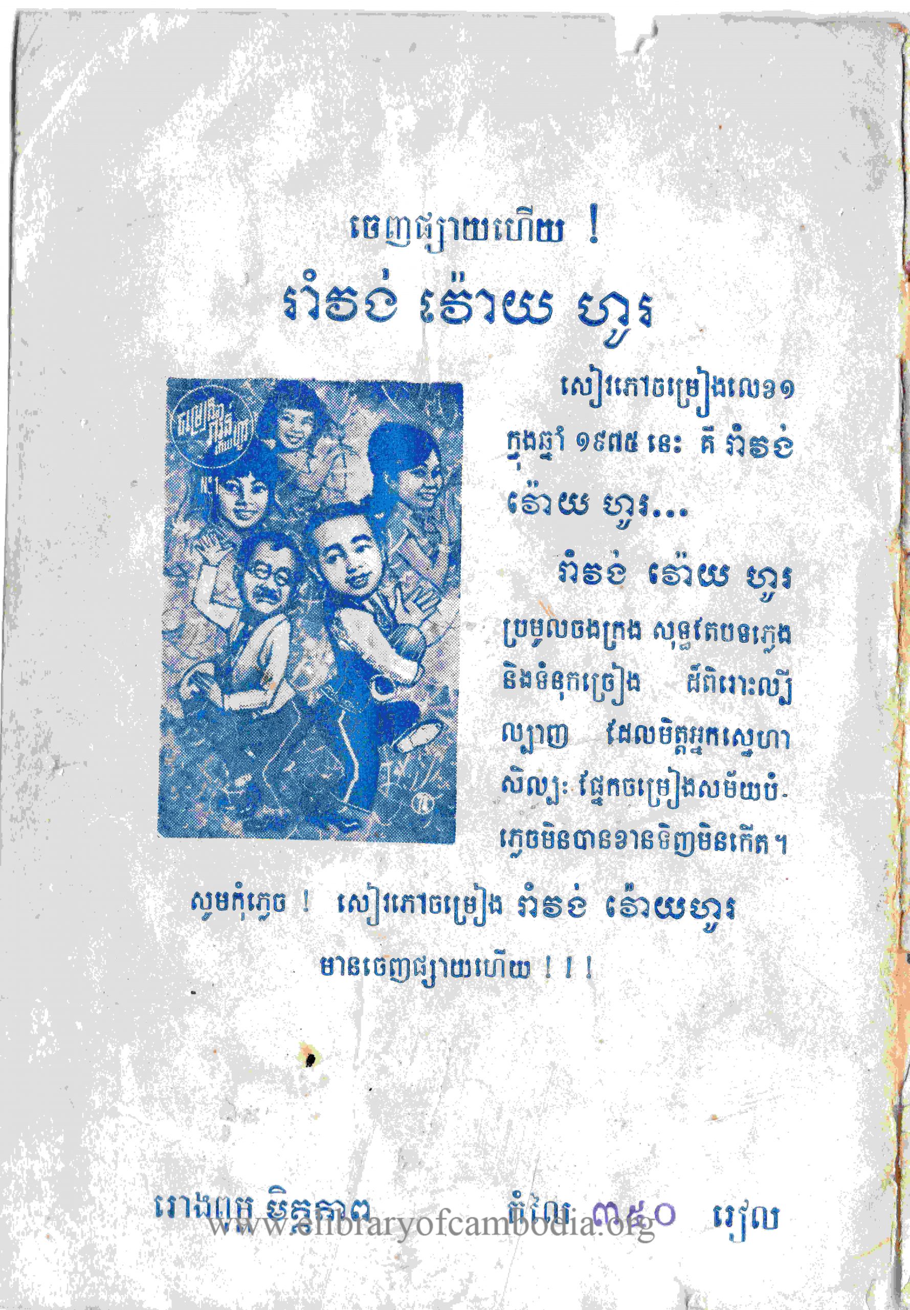 • ចេញផ្សាយនៅលើសៀវភៅ ចម្រៀងកាស្សែត វ៉ោយហូរលេខ២
