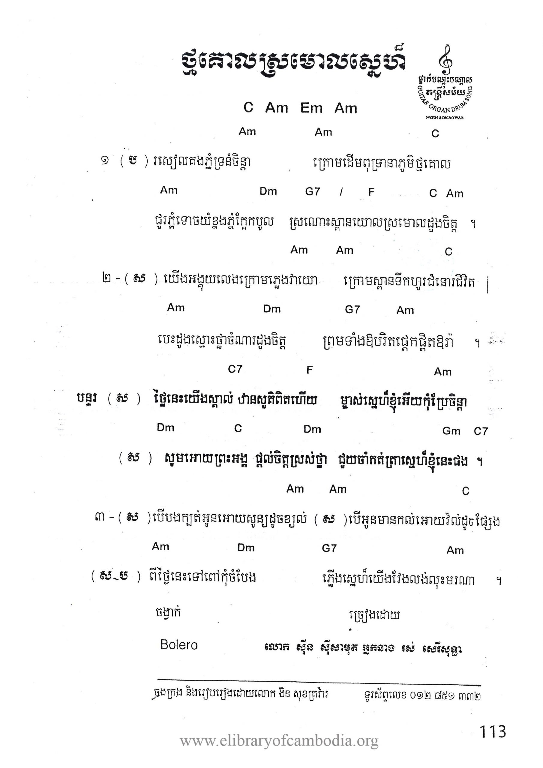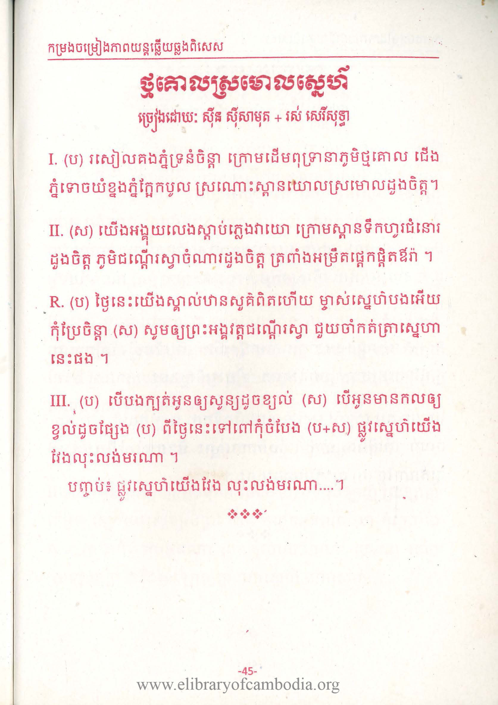 យើងខ្ញុំមានបំណងរក្សាសម្បត្តិខ្មែរទុកនៅលើគេហទំព័រ www.elibraryofcambodia.org នេះ ព្រមទាំងផ្សព្វផ្សាយសម្រាប់បម្រើជាប្រយោជន៍សាធារណៈ ដោយឥតគិតរក និងយកកម្រៃ នៅមុនថ្ងៃទី១៧ ខែមេសា ឆ្នាំ១៩៧៥ ចម្រៀងខ្មែរបានថតផ្សាយលក់លើថាសចម្រៀង 45 RPM 33 ½ RPM 78 RPM ដោយផលិតកម្ម ថាស កណ្ដឹងមាស ឃ្លាំងមឿង ចតុមុខ ហេងហេង សញ្ញាច័ន្ទឆាយា នាគមាស បាយ័ន ផ្សារថ្មី ពស់មាស ពែងមាស ភួងម្លិះ ភ្នំពេជ្រ គ្លិស្សេ ភ្នំពេញ ភ្នំមាស មណ្ឌលតន្រ្តី មនោរម្យ មេអំបៅ រូបតោ កាពីតូល សញ្ញា វត្តភ្នំ វិមានឯករាជ្យ សម័យអាប៉ូឡូ សាឃូរ៉ា ខ្លាធំ សិម្ពលី សេកមាស ហង្សមាស ហនុមាន ហ្គាណេហ្វូ អង្គរ Lac Sea សញ្ញា អប្សារា អូឡាំពិក កីឡា ថាសមាស ម្កុដពេជ្រ មនោរម្យ បូកគោ ឥន្ទ្រី Eagle ទេពអប្សរ ចតុមុខ ឃ្លោកទិព្វ ខេមរា មេខ្លា សាកលតន្ត្រី មេអំបៅ Diamond Columbo ហ្វីលិព Philips EUROPASIE EP ដំណើរខ្មែរ ទេពធីតា មហាធូរ៉ា ជាដើម។