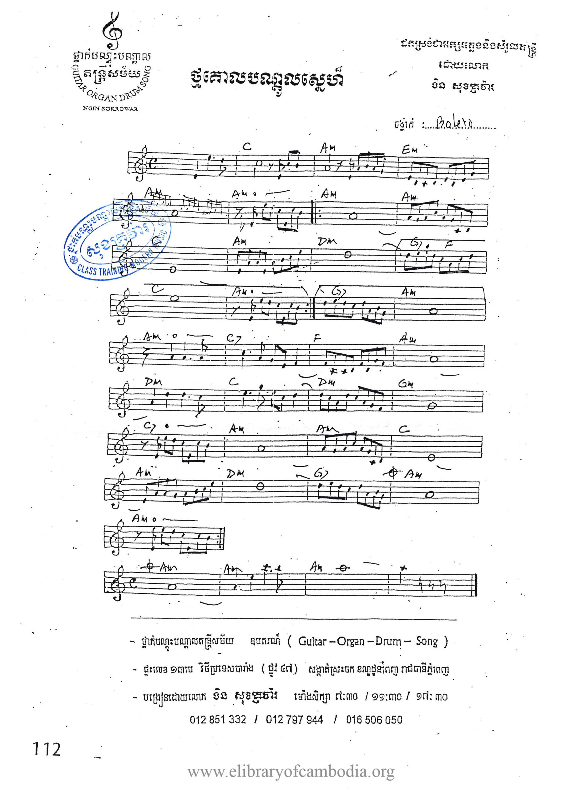 - ចេញផ្សាយនៅលើសៀវភៅចម្រៀង រៀនលេងព្យ៉ាណូ ណោតងាយស្រួល វគ្គ៣